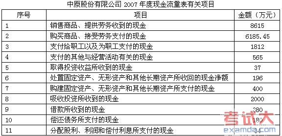 (3)支付给职工以及为职工支付的现金=销售成本中包括的工资及福利费+期末存货中包括的工资及福利费+销售费用中包括的工资及福利费+管理费用中包括的工资及福利费+(应付职工薪酬账户期初余额-应付职工薪酬账户期末余额)=1600+70+100+112+(576-646)1812万元;
