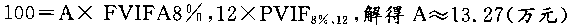 | 4.如果张先生计划借入100万元投资某项目,约定在8年内按年利率12%均匀偿还这笔借款,那么每年应偿还本息的金额为( )。 |