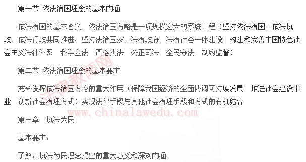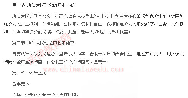 熟悉并能够运用:执法为民理念指导立法、执法、司法工作,分析和评价有 关法治实践和案例。