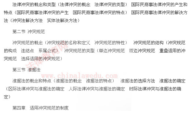 理解:国际民商事法律冲突的产生和特点,冲突规范的特性,准据法的特点。 熟悉并能够运用:国际民商事法律冲突的解决方法,准据法的选择方法以及准据法的确定。