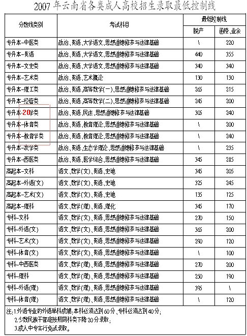 今年,云南省报考成人高校、成人中专的考生有89535人,比去年有所增加,其中,专科起点升本科的有37296人,高中起点升本科的有8281人,高中起点升专科的有43239人,成人中专有719人。教育部下达的招生计划有76560人,录取比例1:1.17。其中,专科起点升本科的招生计划为34789人,录取比例1:1.07;高中起点升本科的招生计划为4898人,录取比例1:1.69;高中起点升专科的招生计划为36864人,录取比例1:1.17;成人中专给予免试入学。
