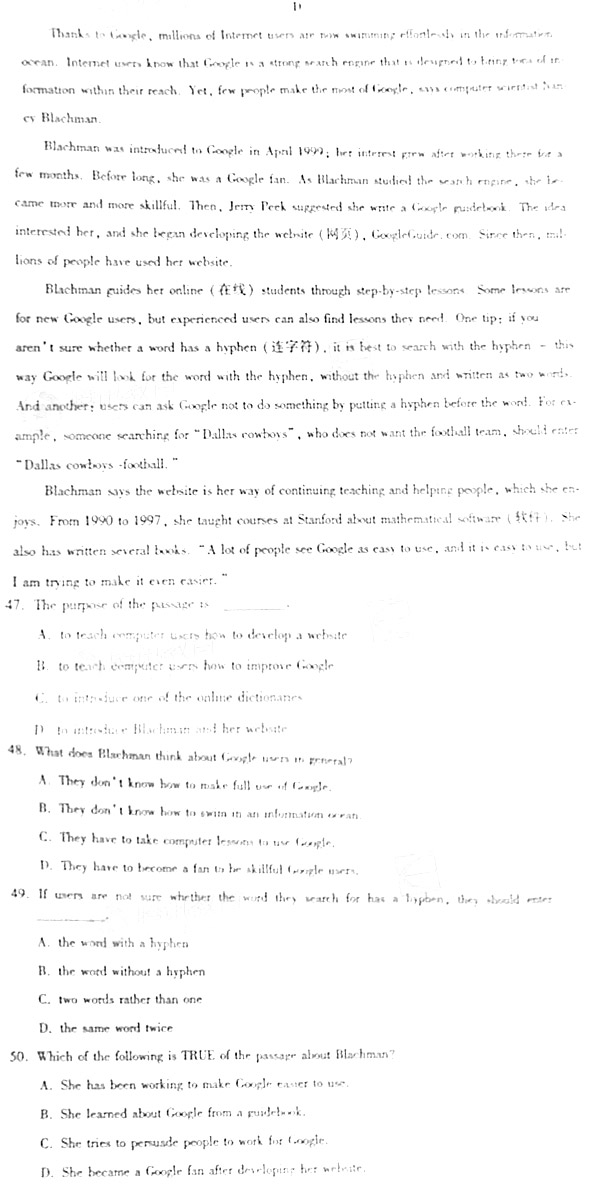 2007年成人高考专升本考试(英语)试题及答案