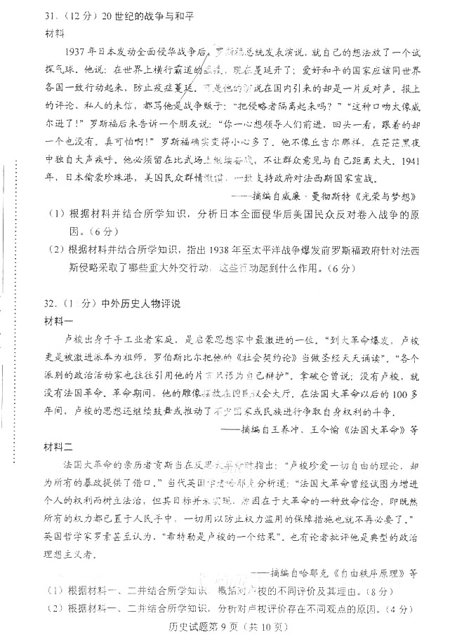 2006年福建省武平二中高三上学期期末考试历史试卷