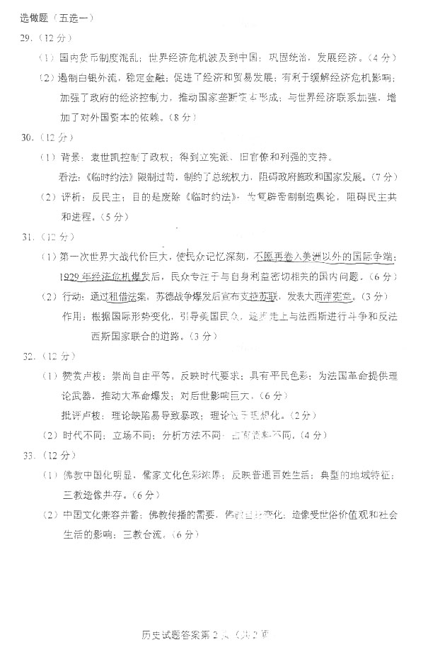 2006年福建省武平二中高三上学期期末考试历史试卷