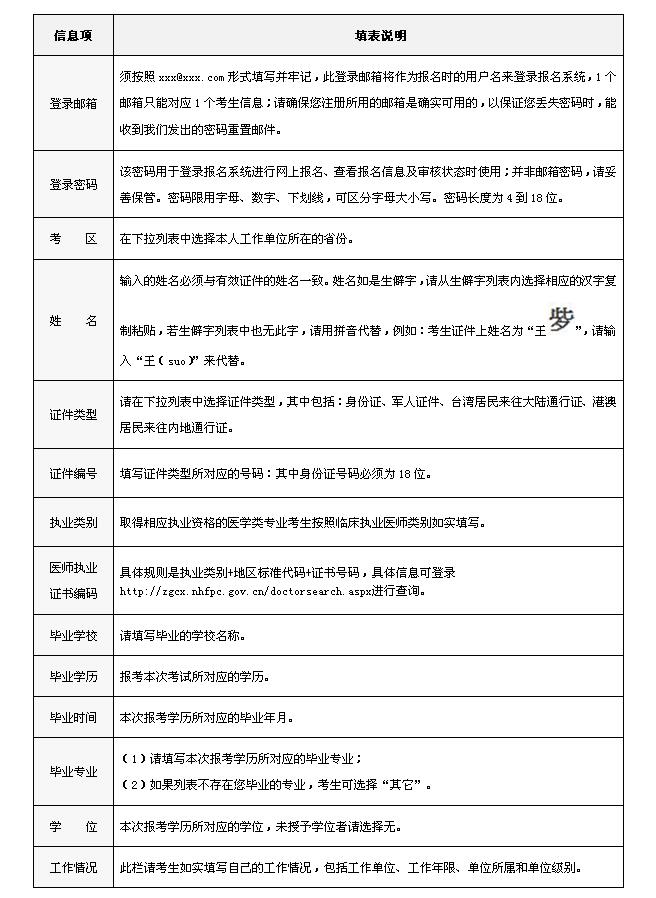 2017年全国医用设备使用人员业务能力考评考生填表说明