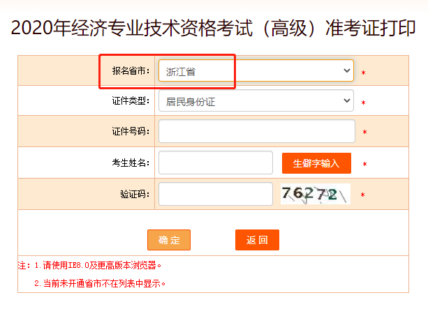 2020年浙江高级经济师考试准考证打印入口正式开通