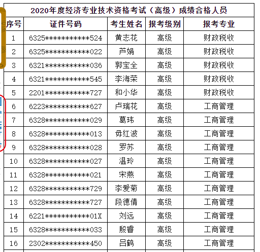 根据《司法部关于印发开展证明事项告知承诺制试点工作方案的通知》(司发通〔2019〕54号)、《人力资源社会保障部办公厅关于印发<人力资源社会保障系统开展证明事项告知承诺制试点工作实施方案>的通知》(人社厅发〔2019〕71号)及《人力资源社会保障部人事考试中心关于印发<专业技术人员资格考试报名证明事项告知承诺制试点工作实施方案>的通知》(人考中心函〔2019〕26号)的规定和要求,现将青海省2020年度高级经济专业技术资格考试成绩合格人员予以公示(名单附后)。
