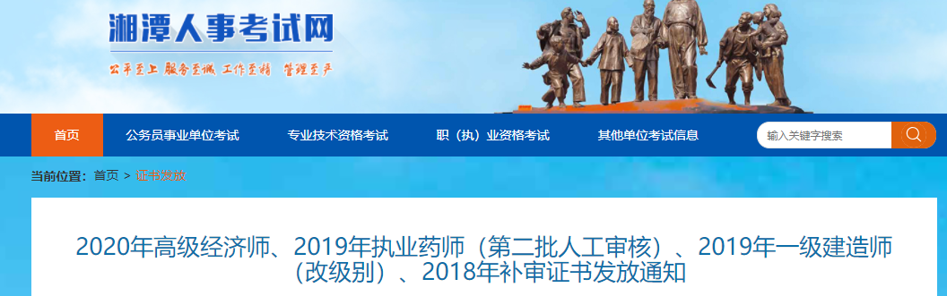 2020年高级经济师、2019年执业药师(第二批人工审核)、2019年一级建造师(改级别)、2018年补审证书(勘查设计、注册城乡规划师、出版、中级安全工程师、经济师、审计、社会工作者、监理工程师、一级建造师执业药师)证书从即日起开始发放。