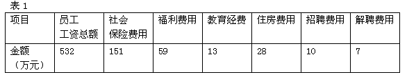 3.某公司毛利金额为5400万元,公司为推销人员所花费的总费用如表1所示。公司中某推销人员月工资1860元,每年发13个月工资。