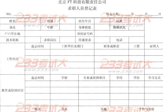 请根据案例中的信息为FT公司设计一份员工招聘申请表。答:示例如下: