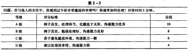 15.PS计算机网络技术有限公司是一家专门从事软件开发、电子商务、系统集成、计算机产品代理销售的IT高新企业。最近,PS公司准备采用面试方法招聘客户经理,招聘的客户经理主要从事网络产品的推广,工作中需要与客户进行沟通。该公司准备采用面试方法对应聘者进行甄选。面试分两轮进行,第一轮初试,由一位HR招聘专员对求职者进行面试,每人面试时间大约10~15分钟,测评指标如下:仪表良好、言谈举止得体、具有亲和力、普通话标准、性格开朗、对岗位了解、逻辑条理清晰。第二轮复试,采用结构化面试方法,考官根据求职的应答表现,对其相关胜任素质做出相应的评价。该职位有一重要的能力指标为沟通能力,该指标的定义如表2-2所示。![]() (1)在面试实施过程中应注意掌握哪些技巧? (2)根据上述资料,为"沟通能力"指标设计一个面试提问和评分标准。 |
